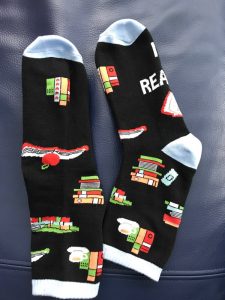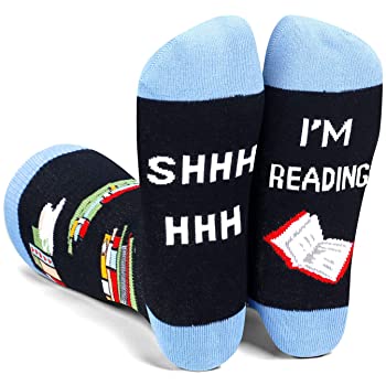 Nogavice – PŠŠŠŠT, BEREM! ? .. je primerno darilo za vse, ki radi berejo ali pa samo rabijo mir, kadar berejo.. Zato so primerni prav za vsakogar. 🙂