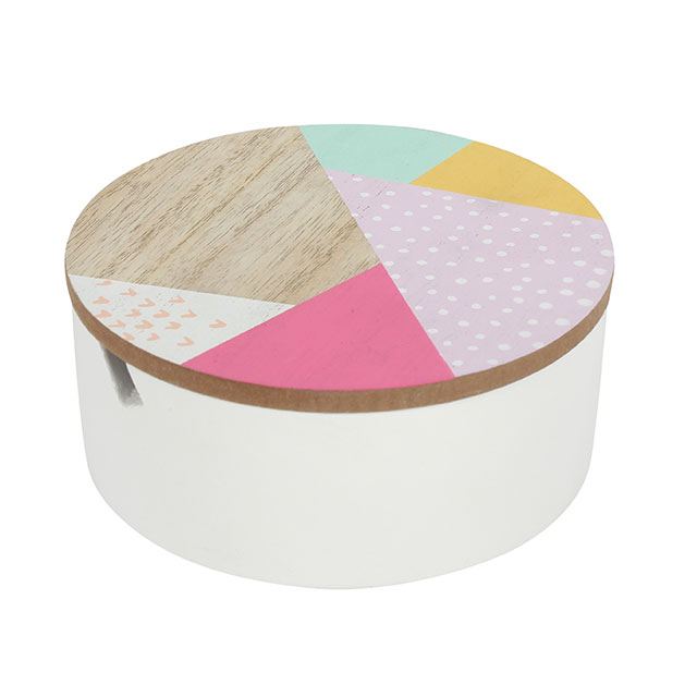 Simpatična lesena škatlica za nakit in shranjevanje le tega. Veselih barv in vzorcev, ki kar kličejo po tem, da jo odpreš in si nadeneš najljubšo ogrlico! 🙂
